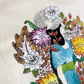 Esta camiseta, de manga corta y totalmente natural de algodón 100%, lleva una de las imágenes más icónicas y hermosas de Bona Eva: la preciosa mariposa modernista.